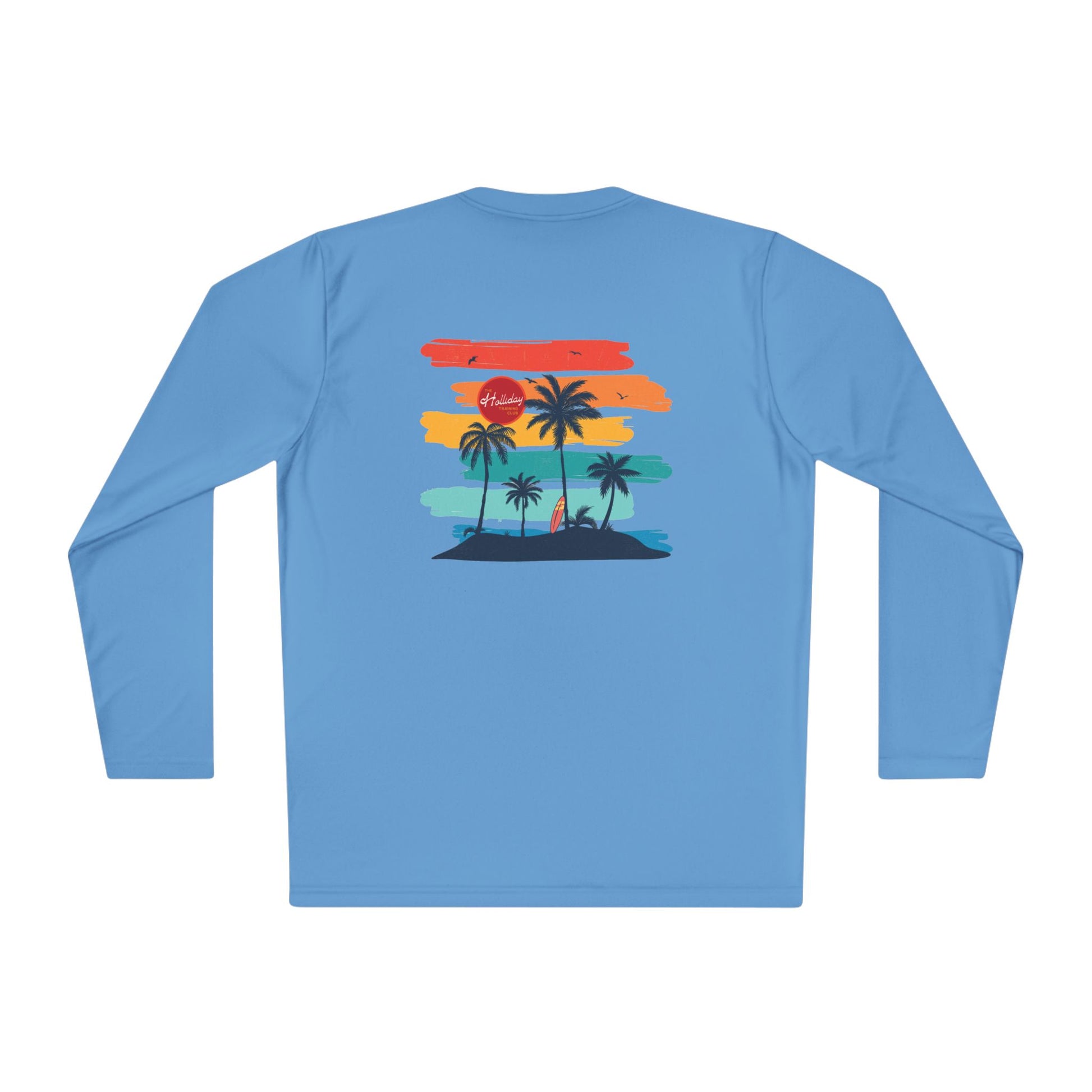 This unisex lightweight long sleeve tee is perfect for workouts, outdoor activities, or just lounging around. The fun and colorful island design gives off a lively and energetic vibe. Ideal for fitness enthusiasts, runners, and anyone who enjoys an active lifestyle. Great for holidays, outdoor gatherings, and casual occasions.